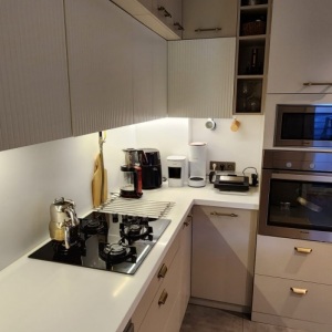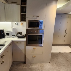 Site içerisinde bulunan 3+1 tek banyolu, kapalı mutfaklı daire; mevcut tesisatın potansiyeli ve planın elverişliliği kullanılarak ebeveyn banyolu, açık mutfaklı bir daire olarak yeniden tasarlanmıştır. Dış cephe haricinde müdahale edilmeyen kalem bulunmamaktadır.